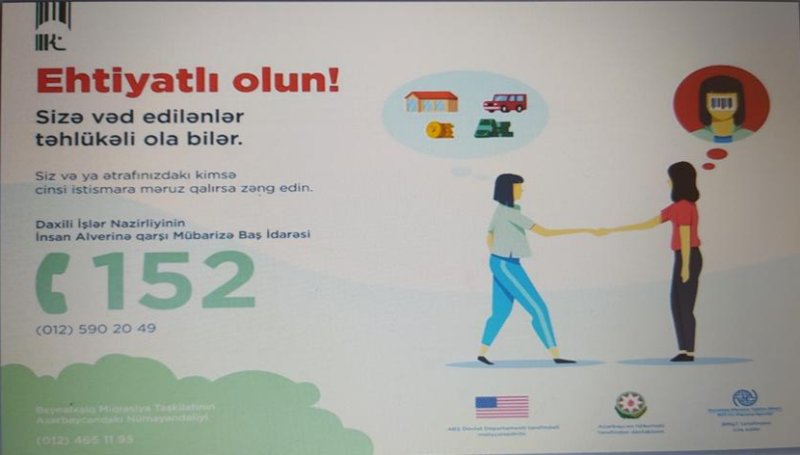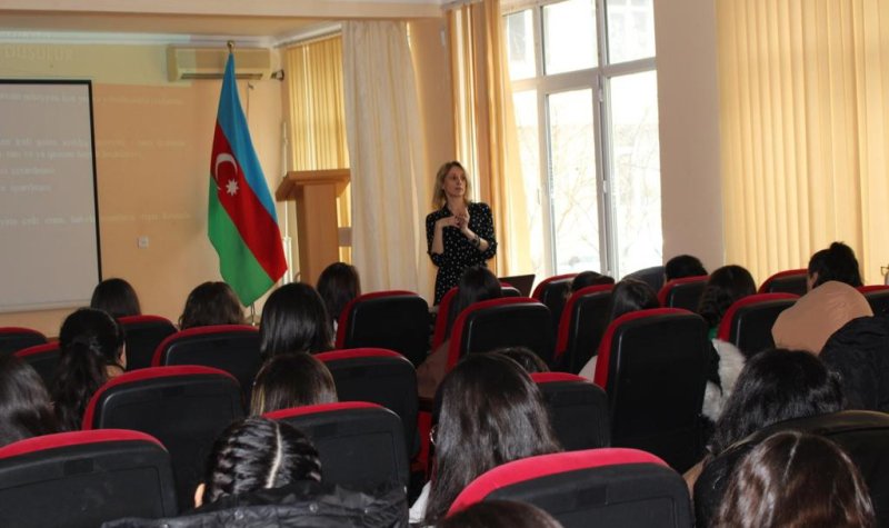 09.03.2023-cü il tarixində Azərbaycan Dövlət İqtisad Universitetinin nəzdində Sosial-İqtisadi Kollecdə psixoloq Xalidə Kərimova “İnsan alveri” mövzusunda əyani şöbənin “Maliyyə işi” ixtisası üzrə I kurs 123 saylı, “mühasibat uçotu” ixtisası üzrə I kurs 587 saylı, II kurs 583 saylı və “sosial iş” ixtisası üzrə I kurs 710 saylı qrup tələbələri ilə “Qurbana çevrilmə” adlı seminar keçirdi. Seminarda tələbələrə insan alveri qurbanlarının əlamətləri, insаn аlvеrinin qurbanına çevrilmənin mехаnizmi, хаricə gеtməк istəyənlər üçün təhlüкəsizlik plаnı, insаnlаrı tоrа sаlmаq üçün istifаdə еdilən fəndlər, qurbanların qarşılaşdıqları problemlər, xaricdə işləmək və təhsil almaq təklif olunursa diqqət olunmalı nüanslar qeyd olundu. Bundan əlavə insan alveri qurbanlarının müvəqqəti yaşaması üçün xüsusi müəsissə-sığınacaq, 152 qaynar xətt, www.insanalveri.gov.az saytı haqqında da tələbələrə məlumat verildi. Qrup tələbələri də bu mövzuda öz fikirlərini bildirdilər. Sonda tələbələr ilə travma sonrası tətbiq edilən qrup işi həyata keçirildi.