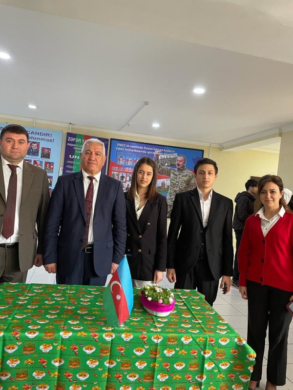 UNEC-in nəzdində Sosial-İqtisadi Kollecdə “Novruz festivalı” keçirilib. Kollecin direktoru,pedaqogika üzrə elmlər doktoru Vidadi Orucov çıxış edərək festival iştirakçılarını təbrik etdi. O, Novruz bayramı və onun mənəvi əhəmiyyətindən danışaraq Novruzun xoşbəxtlik, sevinc bayramı olduğunu, insanları bir araya gətirdiyini vurğuladı. Sonra, tələbələr tərəfindən qurulmuş Novruz ənənələrini əks etdirən bayram stendləri nümayiş etdirildi. Sonda tədbirdə fəal iştirak edən qruplar və qrup rəhbərləri təşəkkürnamə ilə təltif edilib.
