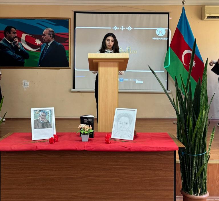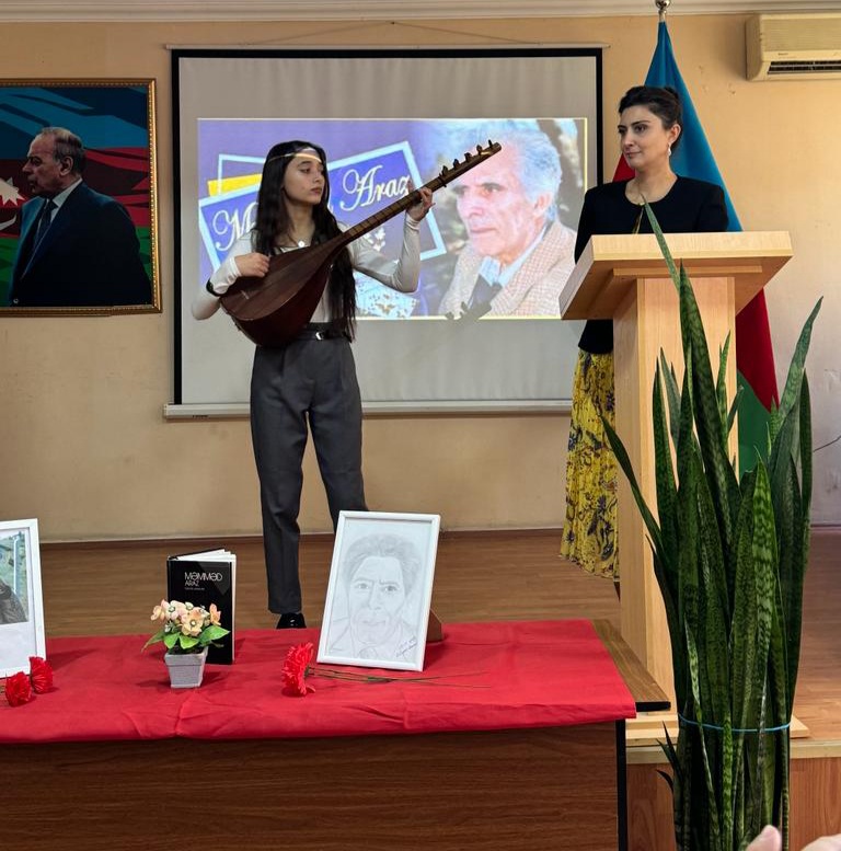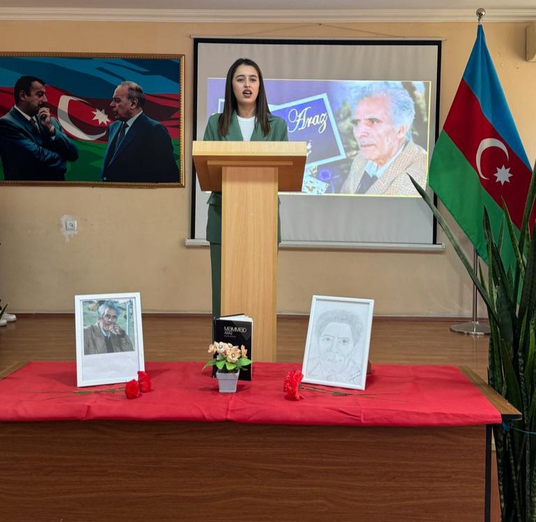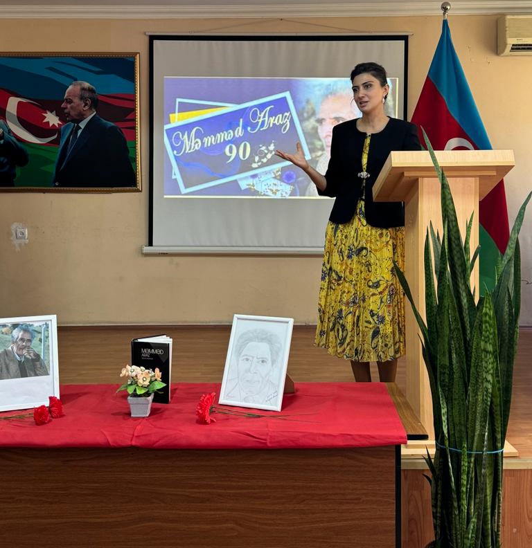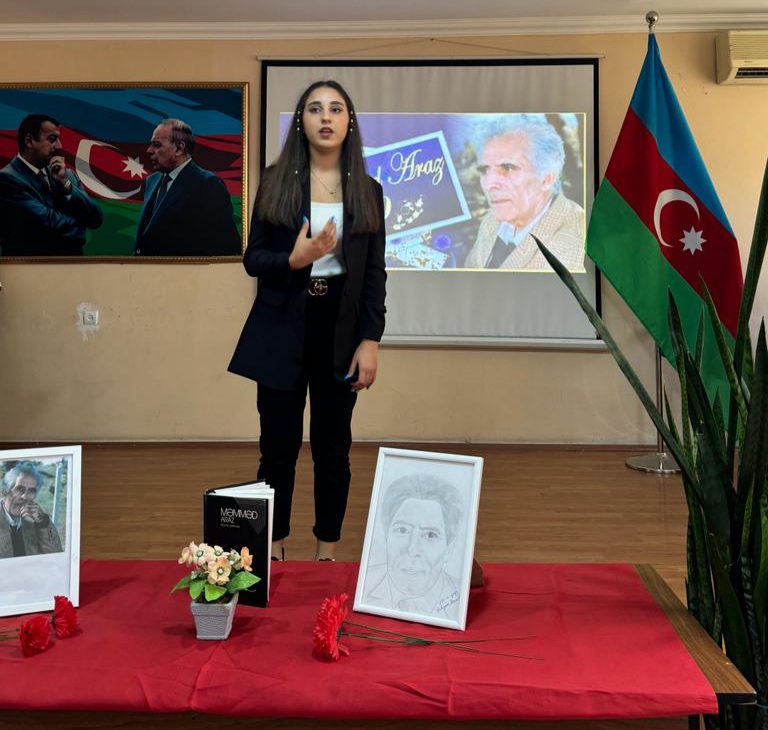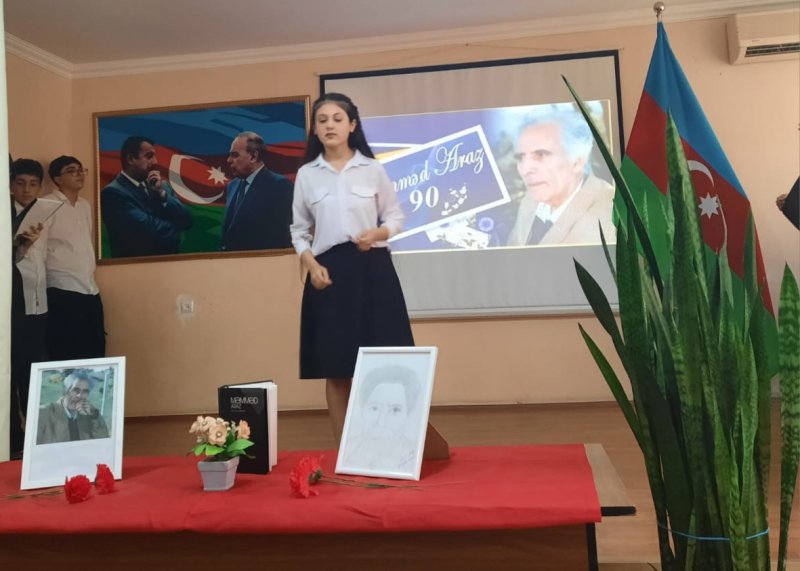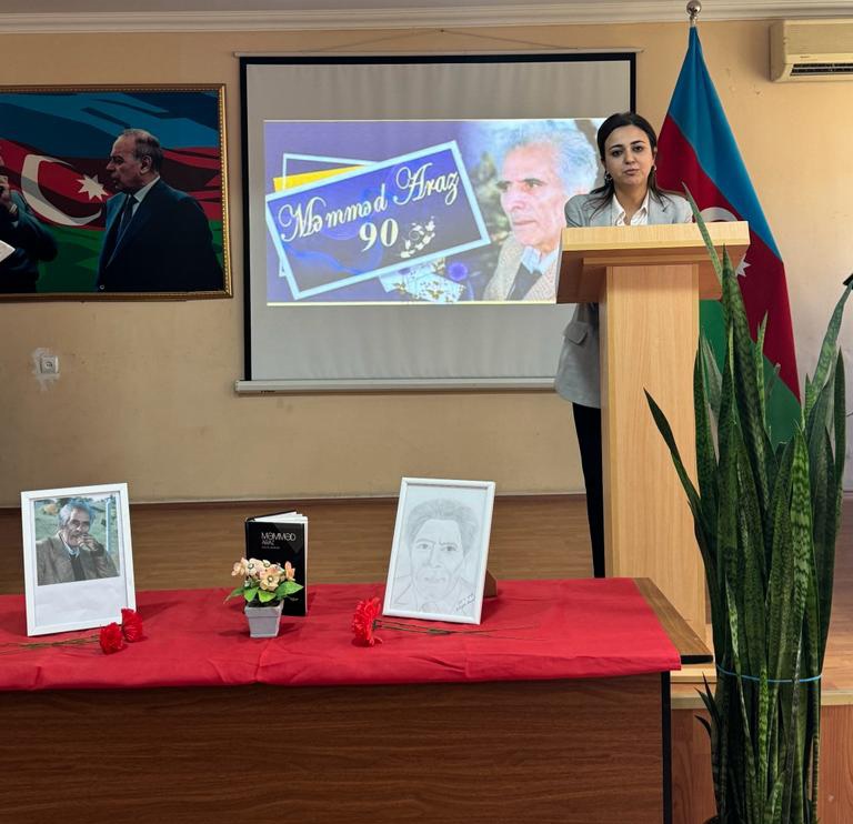 Tədbirdə tədris işləri üzrə direktor müavini, eyni zamanda Azərbaycan dili və ədəbiyyat müəllimi Xanım Məmmədova çıxış edərək bildirdi ki, Məmməd Araz yaradıcılığının zirvəsində Azərbaycan torpağı, ana vətən, onun tarixi və gözəllikləri dayanır. Xanım Məmmədova daha sonar qeyd etdi ki, Məmməd Arazın əsas şeirləri milli və mədəni məsələlərlə, sevgi, Vətən, insan haqqı, azadlıq və xalqın ürəyi ilə bağlı məqamları əks etdirir. Onun əsərlərində xalq sevgisi, milli hisslər və insanlığa müraciət mövzuları geniş şöhrət qazanıb.