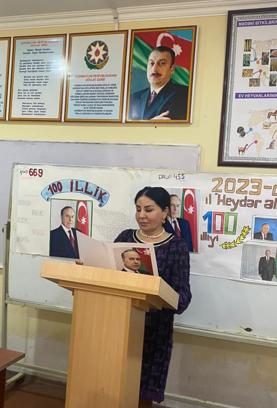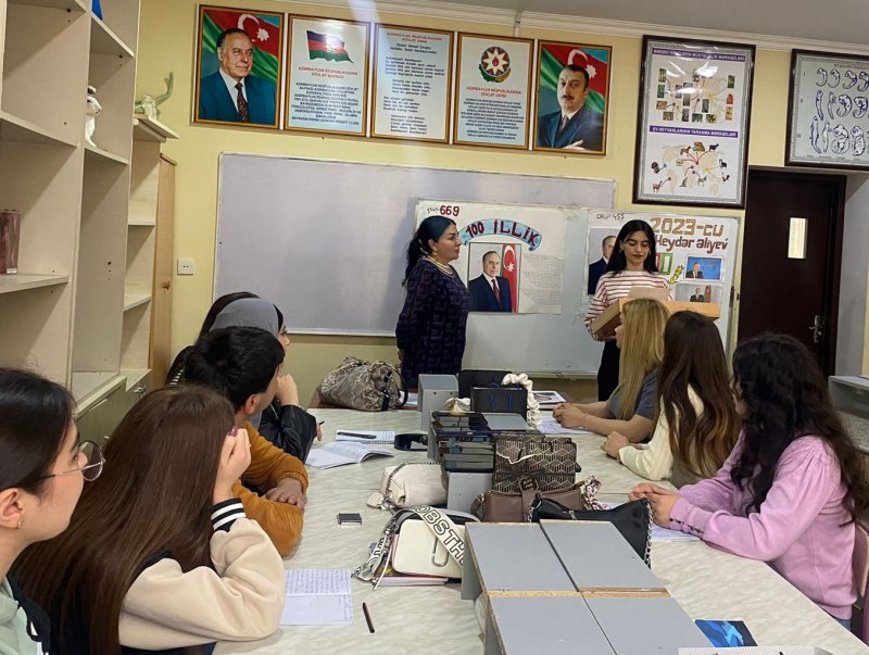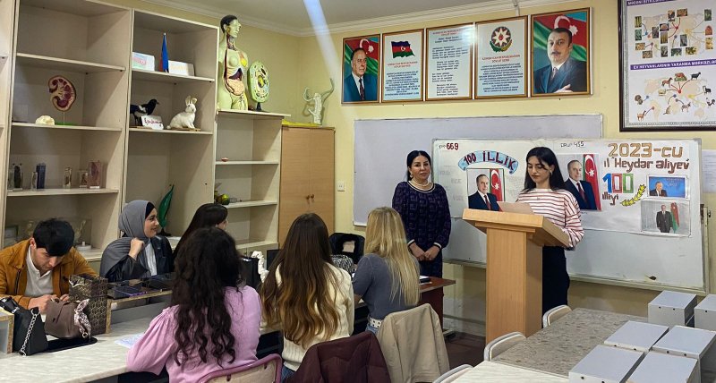 Kollecin müəllimi Rəna Rəhimova tələbələrə Ulu Öndər Heydər Əliyevin həyatı haqqında ətraflı məlumat verərək bildirdi ki, milli birliyə və dünya azərbaycanlılarının həmrəyliyinə nail olduğumuza görə də türk dünyasının dahi şəxsiyyəti, ümummilli liderimiz Heydər Əliyevə borcluyuq.
