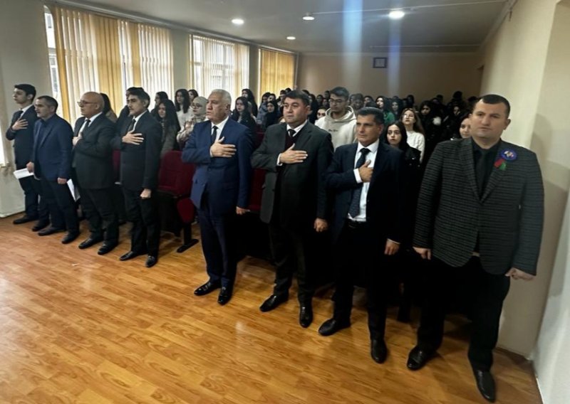 Sonra Kollecin akt zalında Ümummilli Lider Heydər Əliyevin anım günü ilə bağlı tədbir davam edib. Tədbirdə UNEC-in nəzdində Sosial-İqtisadi Kollecin sosial və humanitar məsələlər üzrə direktor müavini Zaur Vəliyev,YAP-nın Kollec üzrə ərazi təşkilatının sədri Natiq Musayev,Kollecin tələbə həmkarlar təşkilatının sədri Asim Novruzov cıxış edərək Ulu Öndərin həyat yolundan,həyata kecirdiyi islahatlardan,xalqın və dövlətin xilası naminə atdığı addımlardan danışıblar.