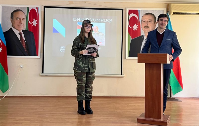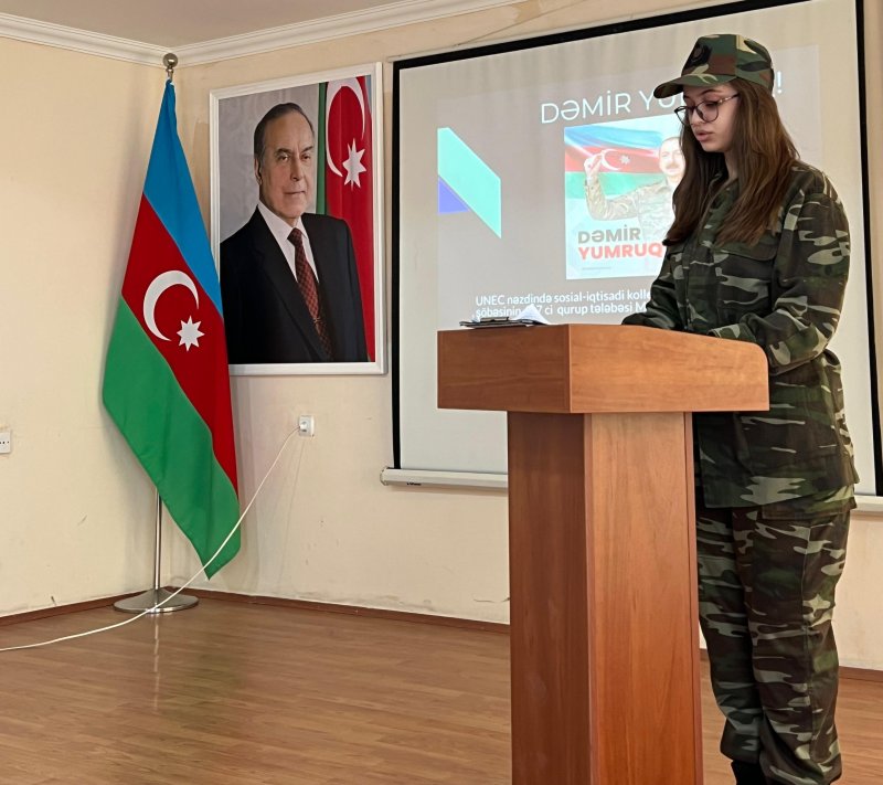 Yeniyetmələr arasında hərbi vətənpərvərlik tərbiyəsini təbliğ etmək,ordumuz haqqında düzgün və müsbət təsəvvür formalaşdırmaq, Vətənə məhəbbət hisslərini aşılamaq məqsədilə UNEC-in nəzdində Sosial-İqtisadi Kollecdə “Dəmir yumruq” adlı tədbir keçirilmişdir.
