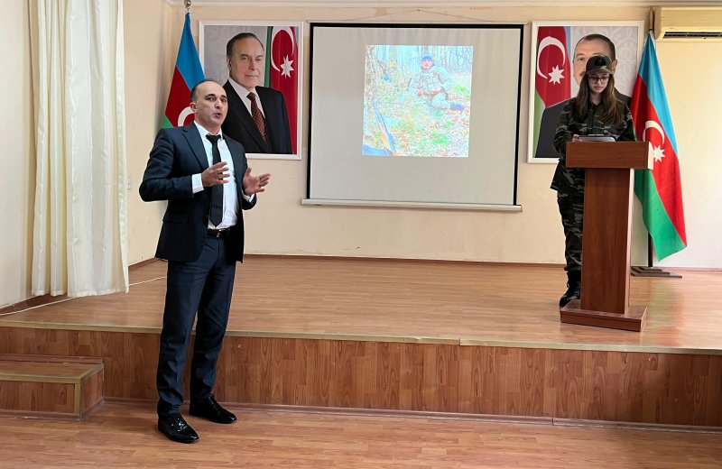 Kollecin hərbi müəllimi Xəlil Hüseynov Azərbaycan tarixinin şərəfli səhifələrindən, Vətən müharibəsinə xalqımızın qazandığı Zəfərin əhəmiyyətindən və ölkəmizin gələcəyi olan gənclərimizin vətənpərvər ruhda böyüməsinin zəruriliyindən danışılıb.