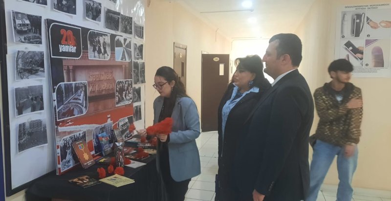 Elm və Təhsil Nazirliyinin və UNEC rektorunun imzaladığı “20 Yanvar faciəsinin otuz beşinci ildönümü ilə bağlı” Tədbirlər Planına uyğun olaraq UNEC-in nəzdində Sosial-İqtisadi Kollecdə Ümumxalq Hüzn Gününə həsr olunmuş sərgi təşkil edilmişdir. Sərgidə 20 Yanvar hadisəsinin Azərbaycan tarixində qanla yazılmış bir səhifə, eyni zamanda Azərbaycanın istiqlal yolunun ilk zirvəsi, milli məfkurəmizin, azadlıq istəyinin oyanışı olduğunu əks etdirən kitablar, salnamələr, fotolar, jurnallar, dövri mətbuat və digər materiallar numayiş olunub.