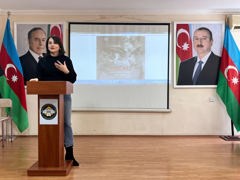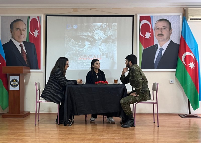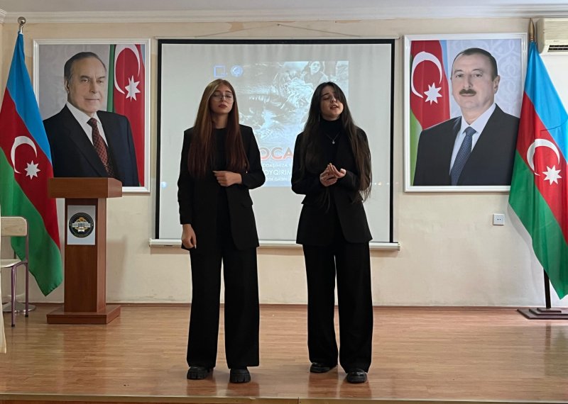 Əvvəlcə Xocalı soyqırımı qurbanlarının əziz xatirəsi bir dəqiqəlik sükutla yad edilib. Tədbirdə kollecin tarix müəllimi Məhsəti Səfiyarlı çıxış edərək bildirdi ki, xalqımızın tarixinə faciə kimi daxil olmuş Xocalı soyqırımından 33 il keçir. 1992-ci il fevralın 25-dən 26-na keçən gecə Xocalıda törədilən kütləvi qətl hadisəsi, Ermənistanın işğalçılıq siyasətinin nəticəsində dinc azərbaycanlı əhaliyə qarşı törədilmiş cinayətlərin ən dəhşətlisidir. Həmin gecə Ermənistan silahlı qüvvələri bütün beynəlxalq hüquq normalarını pozaraq, mühasirədəki Xocalı şəhərinin dinc əhalisinin üzərinə ağır hərbi texnika yeridib, onlara misli görünməmiş qəddarlıqla divan tutub, şəhər yerlə-yeksan edilib.