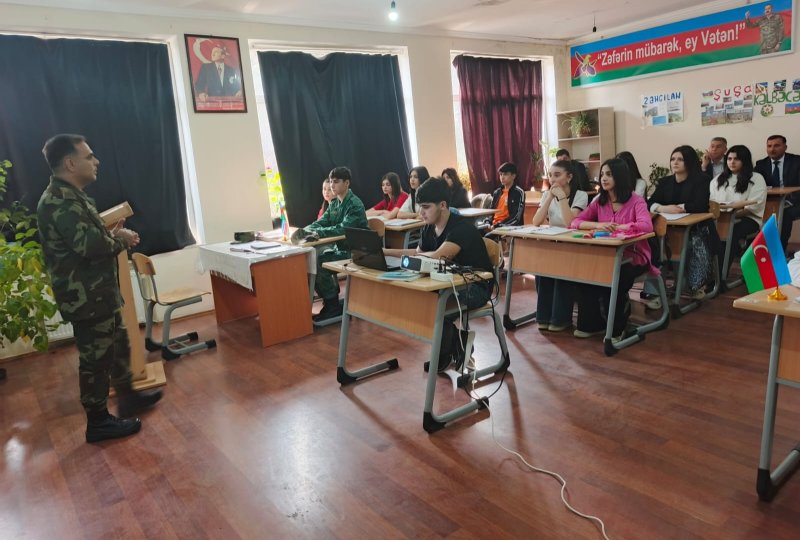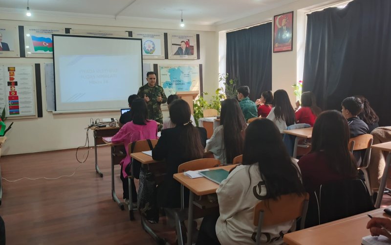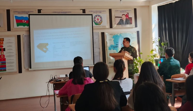 Kollecin gənclərin çağrışaqədərki hərbi hazırlıq üzrə rəhbəri Xəlil Hüseynovun təşkilatçılığı ilə təşkil olunan tədbirdə mina və PHS-lərin qurbanına çevrilmə təhlükəsindən qorunmaq üçün görülən tədbirlərə aid təqdimatlar nümayiş etdirildi.