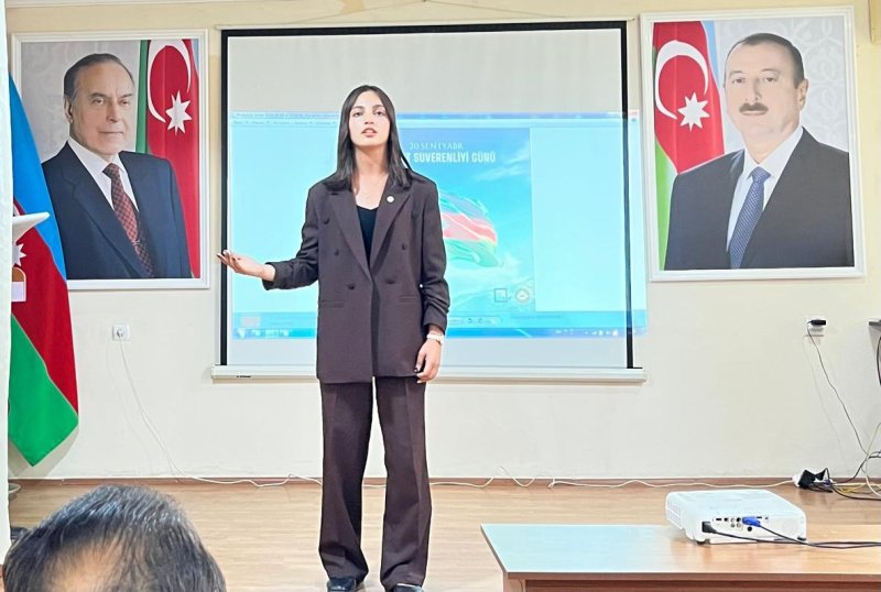 Kollecin metodisti Sveta Behbudova çıxış edərək qeyd etdi ki, 2023-cü ilin sentyabrında cəmi 24 saat ərzində keçirilmiş lokal anti-terror tədbirləri ilə Azərbaycan öz suverenliyini tam şəkildə bərpa etdi. Cəmi bir gün davam edən anti-terror əməliyyatları nəticəsində Konstitusiyamızın aliliyi, dövlətin hüquqi və inzibati hakimiyyəti ölkəmizin bütün ərazisində təmin olundu.Bu gün biz xoşbəxtik ki,hər bir Azərbaycan övladı Vətən, torpaq və millət uğrunda canından keçməyə hazırdır.Bu torpaqlar bizə asanlıqla verilməyib. Onlar şəhidlərimizin canı, qazilərimizin qanı bahasına qorunub.