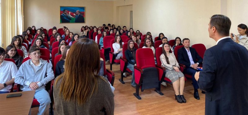 Bu gün Avropa Azərbaycan Məktəbinin rəhbəri Françesko Bankini UNEC nəzdində Sosial İqtisadi Kollecdə tələbələrlə görüşüb.