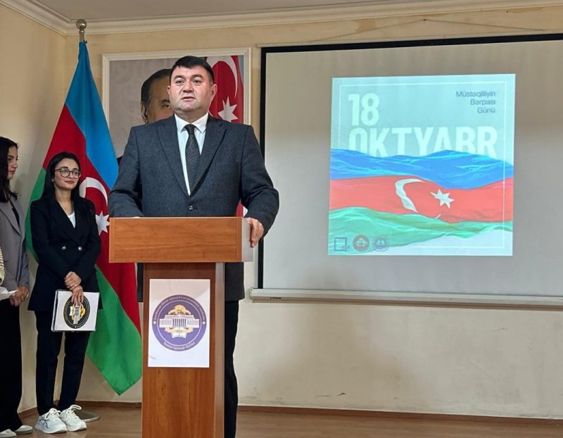 Tədbirdə UNEC nəzdində Sosial İqtisadi Kollecin sosial və humanitar məsələlər üzrə direktor müavini Zaur Vəliyev cıxış edərək bildirdi ki, 34 il əvvəl, 1991-ci il oktyabrın 18-də Azərbaycan Respublikası Ali Soveti Dövlət müstəqilliyi haqqında Konstitusiya Aktını qəbul edərək bütün dünyaya Azərbaycanın demokratik və dünyəvi dövlət olduğunu bəyan edib.