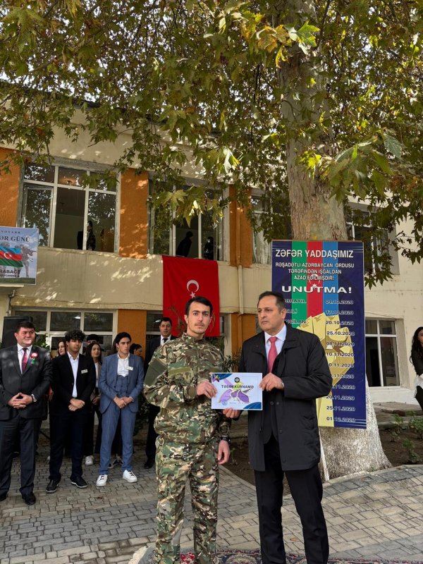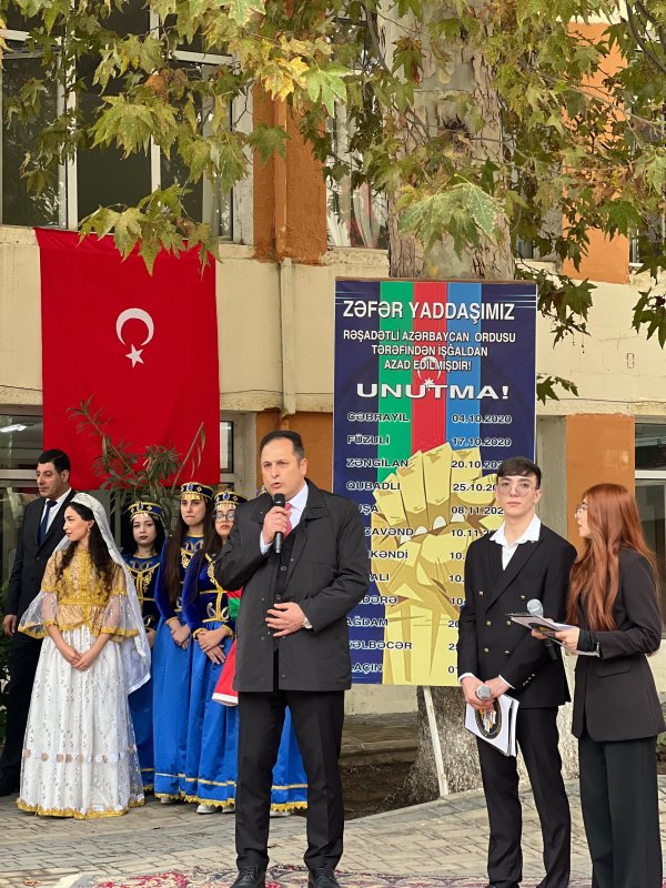 Azərbaycan Dövlət İqtisad Universitetinin (UNEC) nəzdində Sosial-İqtisadi Kollecin direktoru Mübariz Hacıbəyov tədbirdə 8 Noyabr - Zəfər Gününün beşinci ildönümü münasibəti ilə hər kəsi təbrik edərək bu bayramın təntənəli səkildə qeyd edilməsindən qürür duyduqlarını, eyni zamanda hərbçilərimizin cəsarətindən, qəhrəmanlığından və Ali Baş Komandan, Prezident İlham Əliyevin 44 günlük Vətən müharibəsi zamanı qətiyyətindən söz açdı.