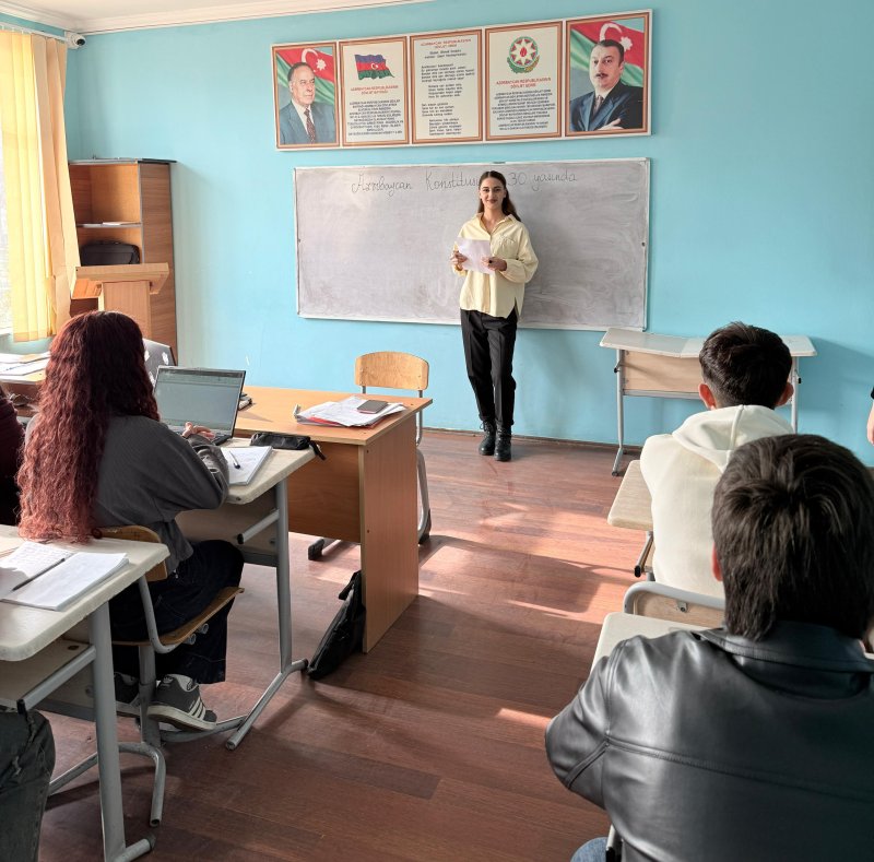 Dərslərdə müəllimlər tələbələrə ölkə Konstitusiyasının 30 il əvvəl - 12 noyabr 1995-ci ildə