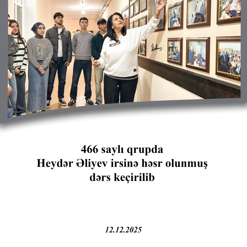 466 saylı qrupda Heydər Əliyev irsinə həsr olunmuş dərs keçirilib