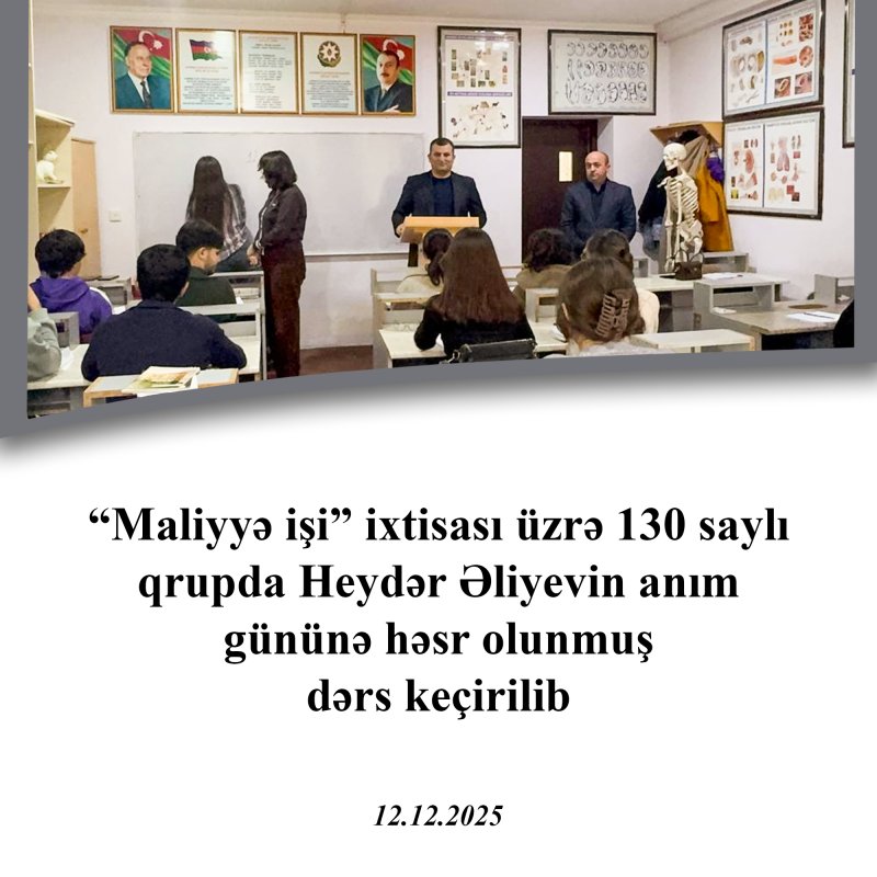 “Maliyyə işi” ixtisası üzrə 130 saylı qrupda Heydər Əliyevin anım gününə həsr olunmuş dərs keçirilib