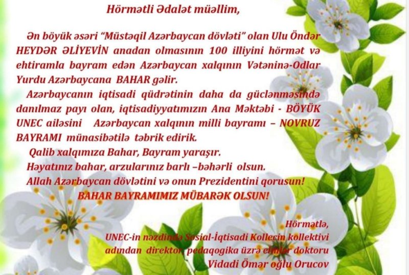 Novruz bayramı təbriki
