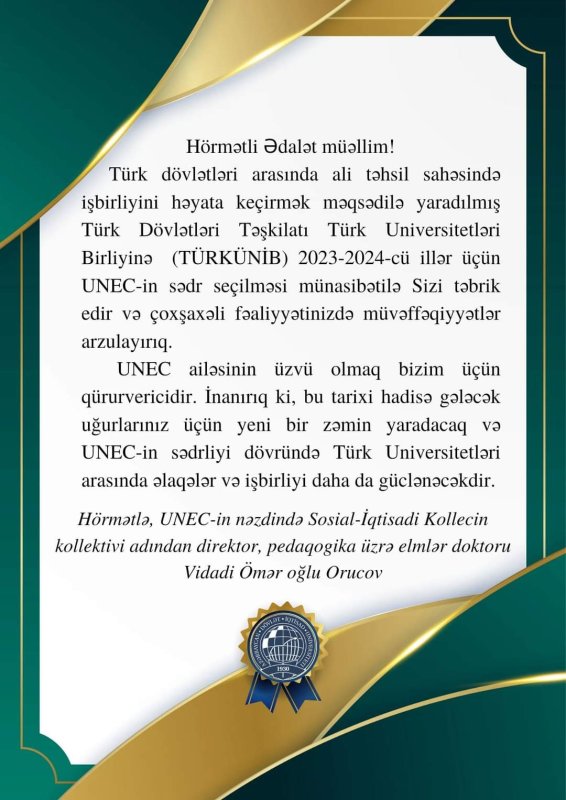 UNEC-in nəzdində Sosial-İqtisadi Kolleci 60 illik yubleyini qeyd etdi